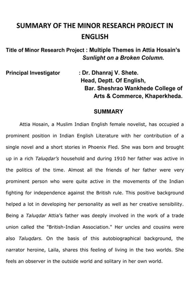 SUMMARY OF THE MINOR RESEARCH PROJECT IN ENGLISH